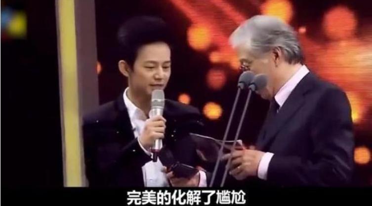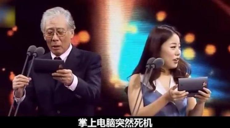 在一次金鹰奖颁奖典礼中,颁奖嘉宾手中的平板没电了。